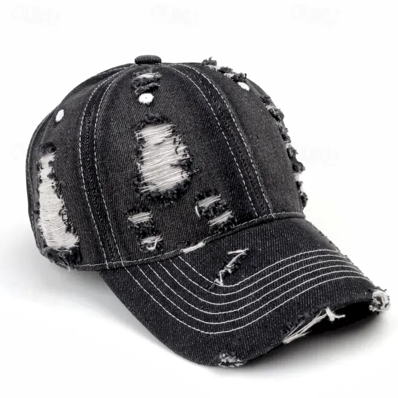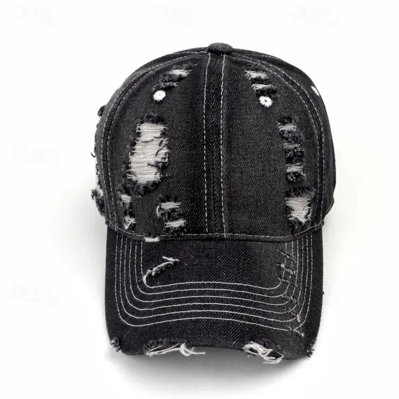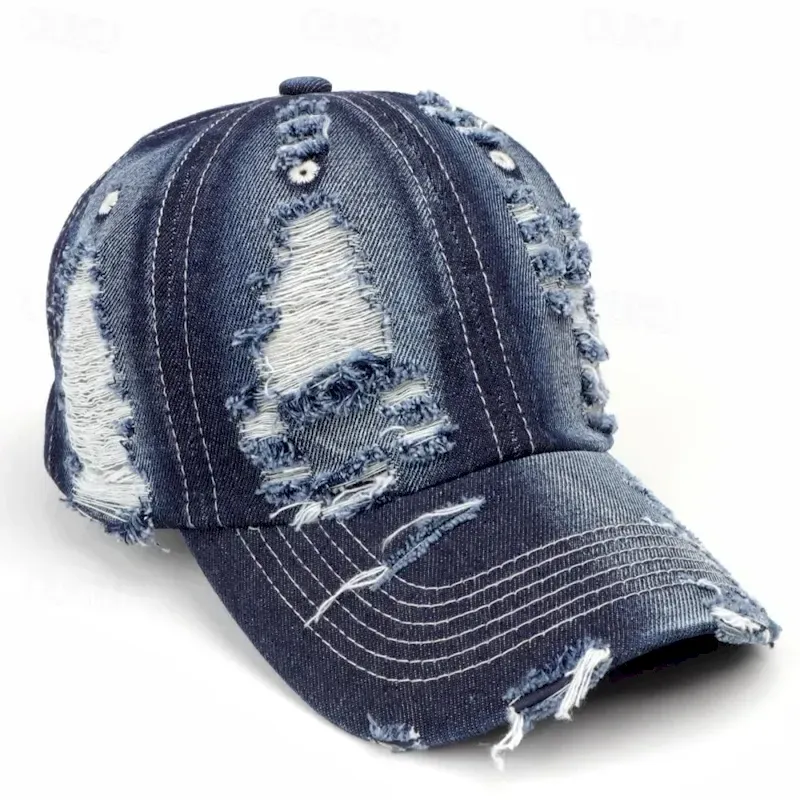 Men’s Baseball Cap Sun Hat Trucker Hat Black Deep Blue Cotton Ripped Fashion Casual Street Daily Plain Adjustable Sunscreen Breathable 2025